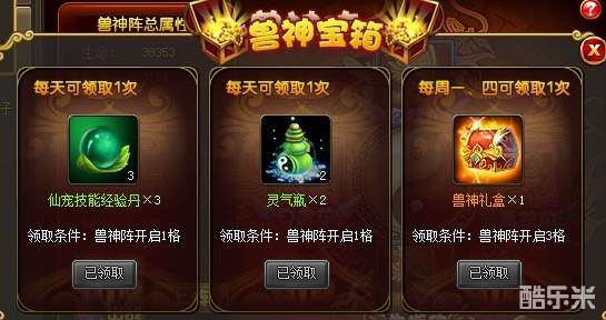 满足相应的兽神阵开启条件可在每日及每周一、四领取丰厚的奖励!