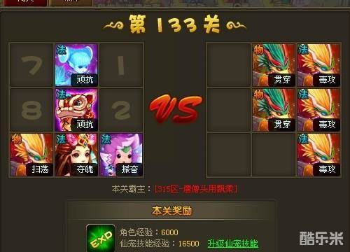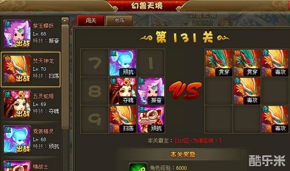 六界仙尊幻兽天境132关和131关布阵一样