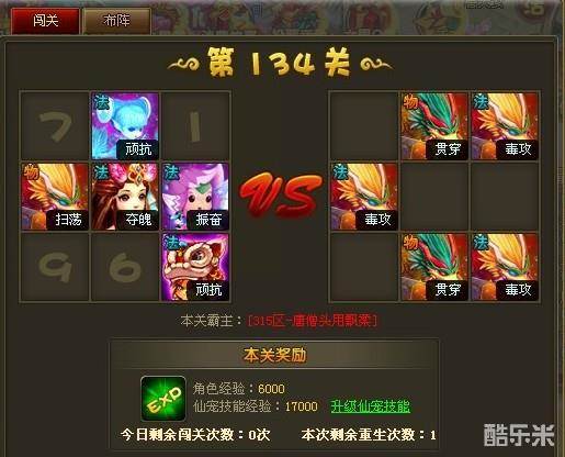 六界仙尊幻兽天境135关和134关布阵一样