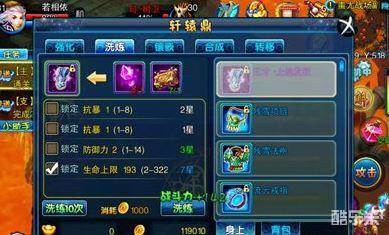 大家可以看到,装备洗练的时候是可以保留某种属性的,比如图中小编的生命上限是7星,那么我只要用一把锁在这项属性的前面点上钩就可以了。现在大家都了解了吧?