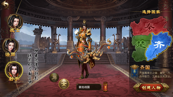 御龙战国中有三种职业,相互克制平衡,形成一个成熟的战斗体系。