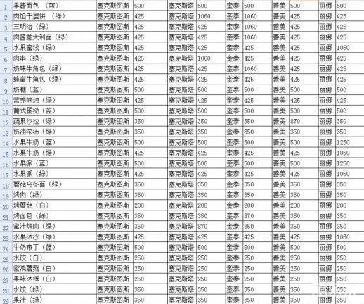 测得26种食物没有超出500的,很可能是不喜欢食物,如果着急提升友好度建议捐材料,硫磺一组+2100、兽筋一组+1400、兽皮+1000、果酱面包.蓝+500。