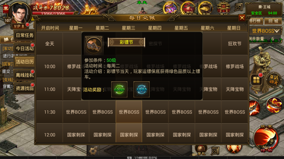 在今日活动界面可详细浏览今日活动历程,右侧有详尽的活动奖励和活动说明。