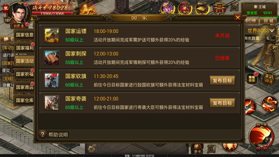 1.国家运镖和国家刺探活动时间到达后将自动开启奖励加成效果