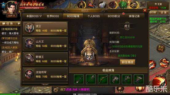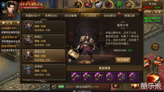 BOSS秘境需要成为VIP才能进入BOSS秘境,层数越高BOSS等级越高掉落装备也越好。