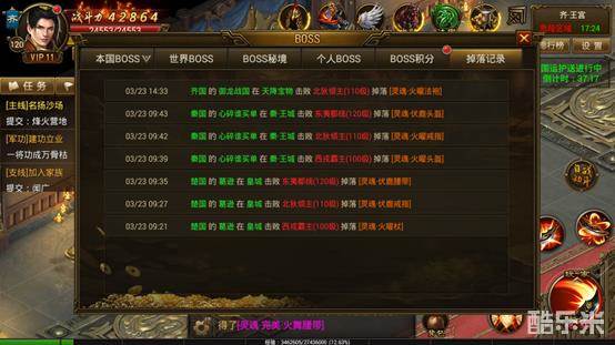 可查看各国BOSS刷新情况、剩余血量、掉落物品,时刻准备抢敌国BOSS!勾选刷新提醒可以接受BOSS刷新提示。
