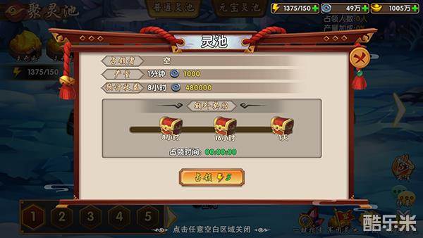 1.灵池分为普通灵池和元宝灵池。玩家可分别在2个灵池里占领2个地块,开采资源。