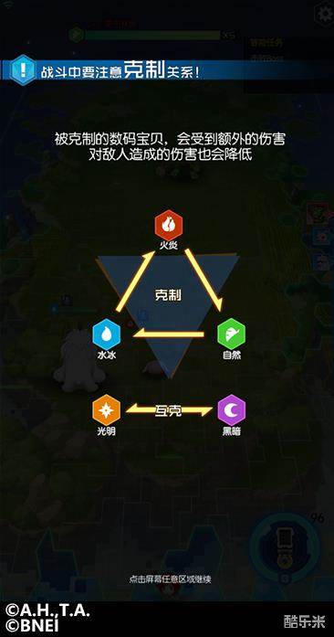 每个数码宝贝都有特定的属性,属性之间有相互克制的关系,克制对方能造成更多的伤害。