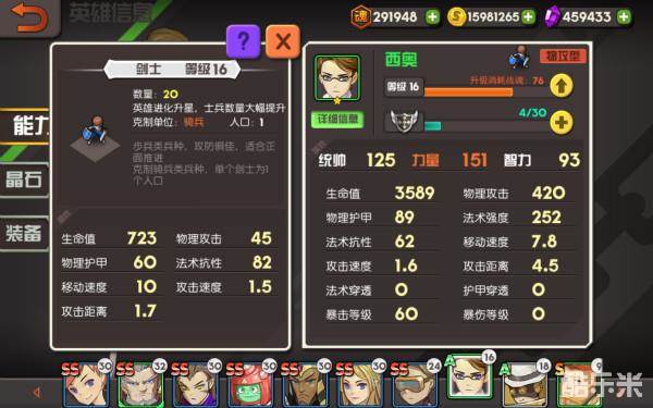西奥的军团是剑士,属于步兵类兵种,攻防俱佳,剑士克制所有骑兵类兵种,每个单位占1个人口,英雄每升2级士兵数量增加1。