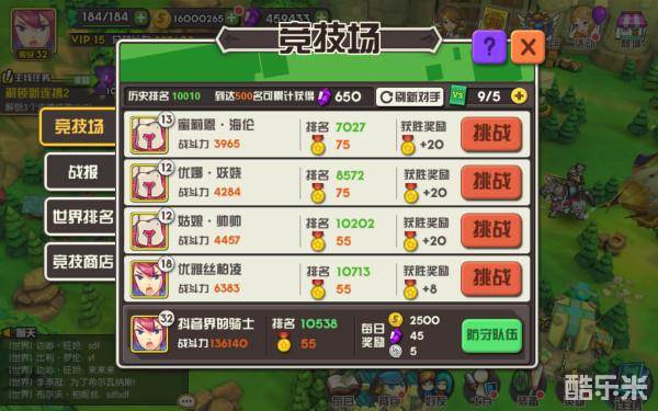 玩家达到11级时,竞技场会解锁,每天会有5次免费挑战机会,每次战斗后都会获得一定的战斗积分,连胜会增加更多的积分,积分越多,排名越高,竞技场获得的积分可以用来兑换一些奖励,同时也会定期从邮件获得一定的竞技奖励,所以积极参与竞技场,好处还是很多的!