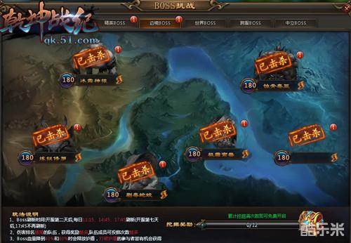 51《乾坤战纪》boss的刷新时间是开服第二天后每日的11:45、14:45、17:45刷新,注意下开服第七天之后17:45不再刷新了,伤害排名越高的队伍,获得奖励越多,队伍成员可投掷次数就越多。