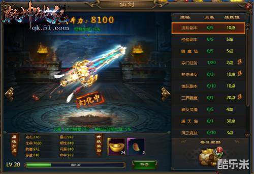51《乾坤战纪》玩家们点击游戏主界面下方的“仙剑”图标,就可以打开系统,查看日常面板。仙剑系统面板上包含了玩家当前活动、任务和副本的信息,以及仙剑经验计算,提升仙剑等级就可以获得大量绑定元宝和极品道具奖励,当然啦,最重要的还是提升我们的战斗力!