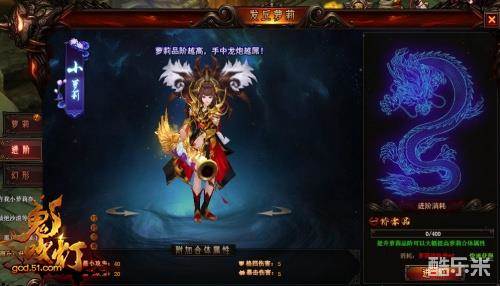 进入51《鬼吹灯之牧野诡事》后,玩家在任务过程中将获得小萝莉,通过主界面上的萝莉按钮可以打开萝莉界面。游戏中玩家可以通过消耗铜钱对小萝莉进行升级,升级后萝莉可以获得更强大的属性,帮助你更快地击杀怪物及BOSS,让你快速获得装备。