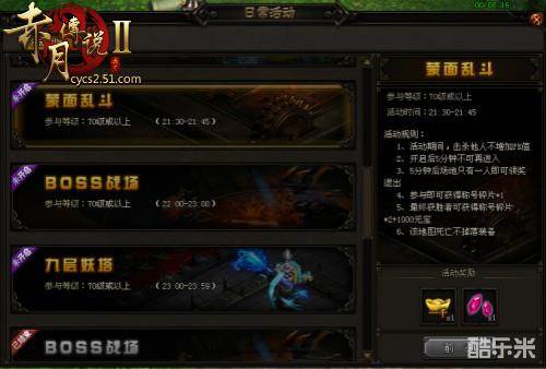 而在51《赤月传说2》中,蒙面乱斗的玩法并没有这么复杂。51《赤月传说2》蒙面乱斗活动每天会开启2次,时间分别为15:00-15:15以及21:30-21:45。玩家在活动期间,击杀他人不增加PK值,死亡也不会掉落装备,喜欢PK的玩家可以尽情厮杀,毫无负担。