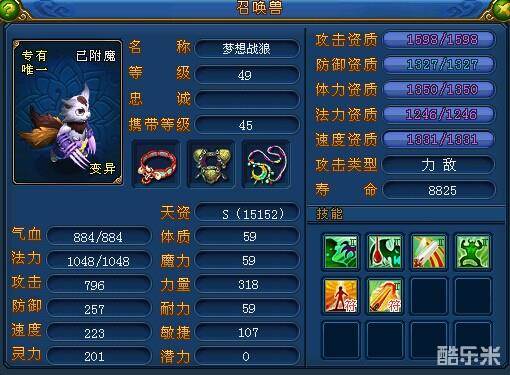 4、变异:相对于宝宝来说,资质是较高,有提升的空间。如:资质为1200/1550的宝宝,通过吃肥料(15级肥料)变成1500/1550,资质涨了,攻击(防御)也会涨。