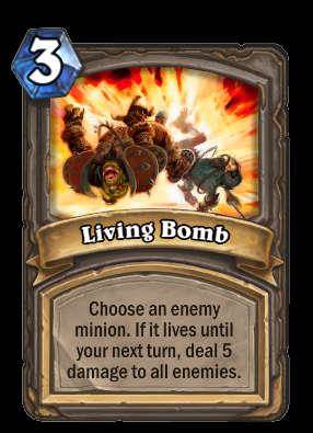 活体炸弹:指定一个随从,如果下回合他还没有死亡,对敌人所有角色造成5点伤害。