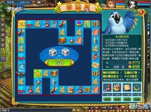 按下“GO”,点数是多少,鹦鹉便会走多少步,你停在哪,那的奖品就是你的!想要还童丹?GO!想要魔兽秘诀?GO!想要藏宝图?GO!想要能用来兑换神兽的神兽祝福石?GOGOGO!快去走出你似魔鬼的步伐,还有更多奖品等着你!