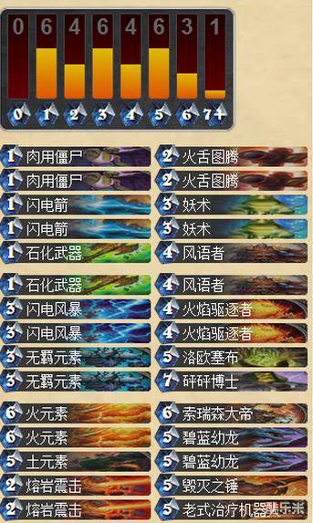 黑石之后,熔岩震级和火焰驱逐者带起了萨满的3费无拘元素,早期用僵尸+石化+闪电箭夺取场面之后,在3费拍下无拘元素,4血的怪对面很难解掉,接着如果能拍下火焰驱逐者的话,场上就会有2个强力生物,只要这些大个子能站住1回合,风语者就能极大的扩大优势,后续还有压制力非常强的火爹、砰砰、末日锤等等