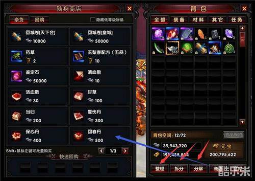 玩家可以使用随身商店快速的购买一些常用的消耗品,同时也可快速的将不需要的物品出售出去。
