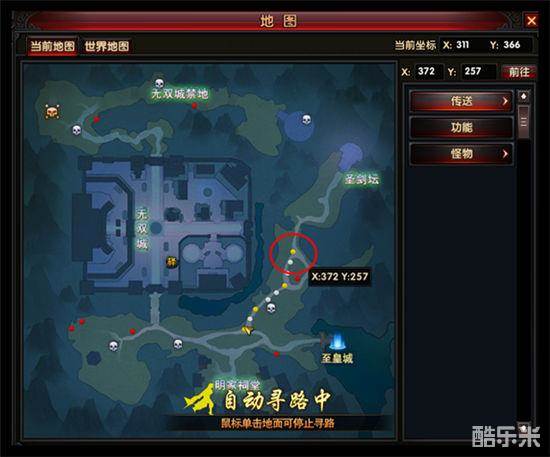 使用快捷键【M】呼出地图面板,可以输入相应坐标之后,点击【前往】即可进行自动寻路
