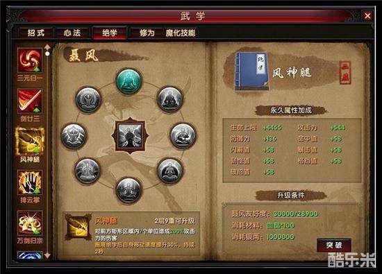 风神腿:通过侠客聂风求取,施展技能后移动速度提升