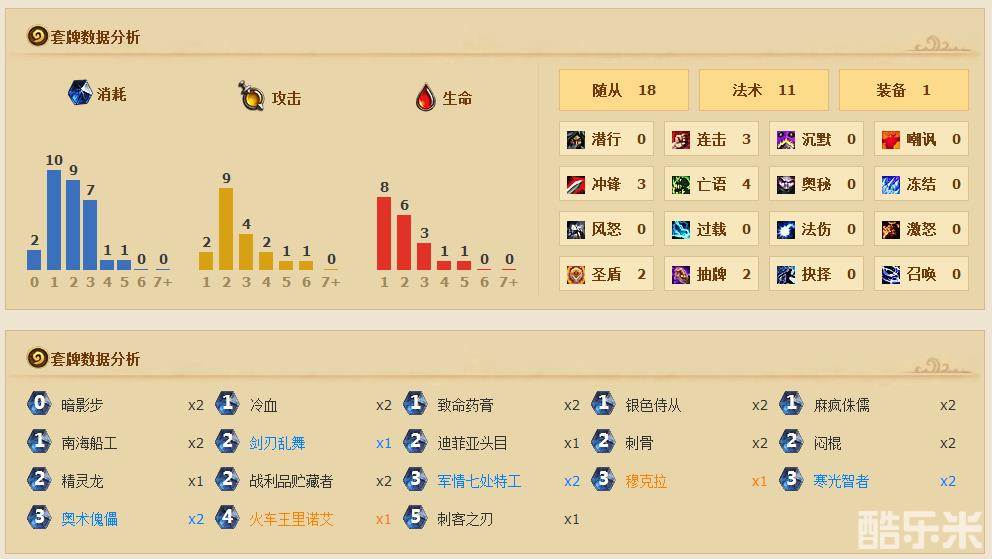 比国服更加激进的一套卡组,使用了更多的低费,然后使用寒光智者这种极端的手段补充手牌,完全放弃中期后期战斗潜力,力求最快速度一击致命的玩法。
