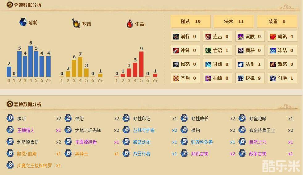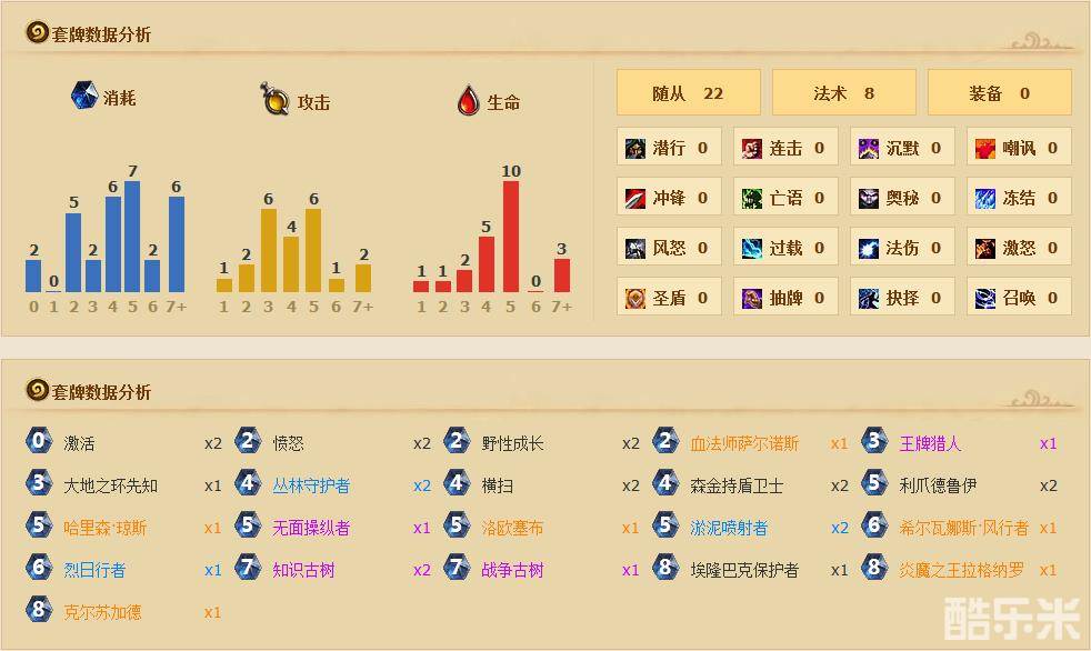 此卡组结合了墙德与咆哮德的有点,可以根据对手切换咆哮德(重抢血斩杀)和长城德(重筑墙劝退)的打法,非常稳定好用。