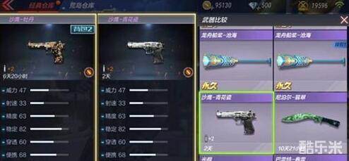如图,沙鹰-牡丹和沙鹰-青花瓷相比,两者在主武器属性上没有任何差别,不过后者由于配置了套装技能,因而在适用层面上更高,亦能为操作者带来更多的收益。