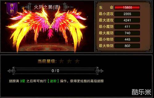翅膀一共分为9级,每一级都会有三个阶段,分别以星级进行表示。