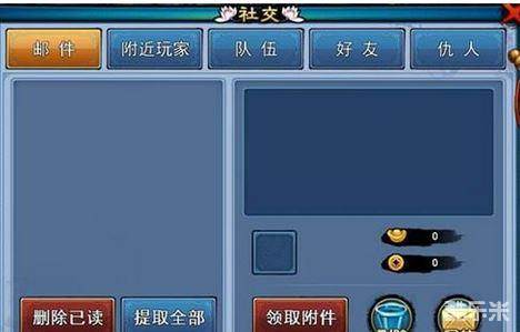 社交分为:邮件、附近玩家、队伍、好友及仇人。