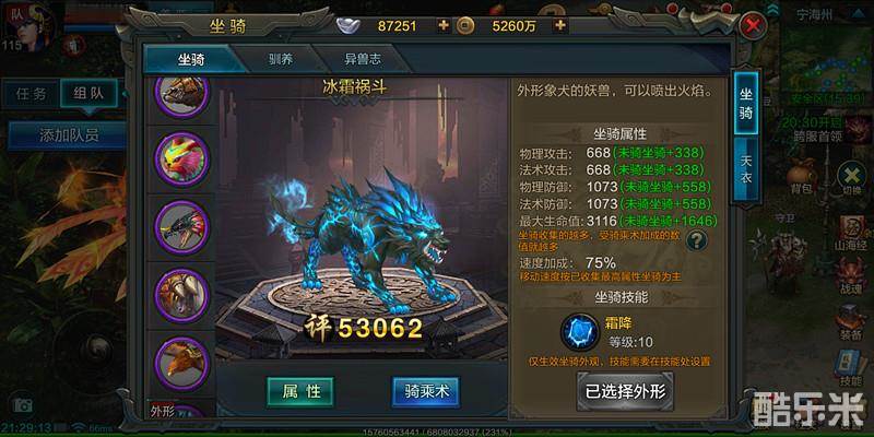 整个坐骑系统,坐骑收集越多,属性加成越多。而驯养除了基础属性的加成外,尽量选择法术暴击、法术攻击、智力等可以加攻击的属性,法师作为高攻职业,必须凸显它的攻击优势。而异兽志的收集,当然越多越好,因为第六层和第七层才会开启暴击和攻击加成。