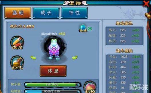 快乐值:宠物快乐值过低时将无法出战