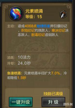 目标被引爆剧毒印记后,输出伤害会降低30%,在PK玩法中让弓手自身受到的攻击也降低了30%,等于变相加强了自己的免伤能力。元素喷涌的山海经选择橙色的九婴,寒冰印记使元素喷涌享受【1-20%】伤害加成,局毒印记使元素喷涌享受【1-20%】暴击加成。山海经可以从寒冰印记和剧毒印记中获得额外收益,同时引爆这两个印记的话,元素喷涌的伤害提升非常可观,而在这套技能组合中恰恰也有冰霜陷阱,能够将这个橙色山海经完美发挥出来。