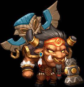 1、牛头人酋长—首充送的英雄,实用性超强,坚硬的身躯能抗能打,反击率