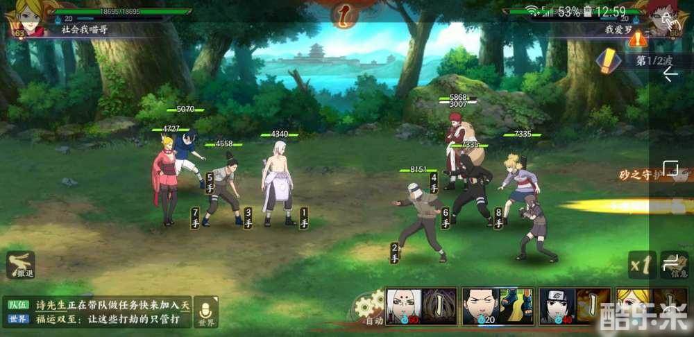 第一回合:君麻和鹿丸随便一个起手控九狼,不行退出再来。等奶妈回复后,鹿丸控九狼。第二回合:佐助奥义手菊,等我爱罗动手后,风主在刷新,因为怕起手到佐助定身。第三回合:佐助奥义九狼带走,鹿丸定身傀儡师。第四回合:君麻定我爱罗,剩下就随便打了。反正我爱罗放大鹿丸和君麻随便一个打断就行,慢慢磨cb。到蛤蟆很好打了,因为君麻被动蛤蟆打不死人。看时机君麻打断蛤蟆奥义就行。
