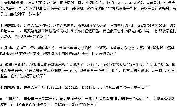 9月10日,梦幻诛仙已经进入内测阶段,随着大量玩家的涌入以及充值系统的开放,一些“不法分子”也开始了肮脏的行动。下面是我亲身经历的各种经典骗术,虽然有些已经落后,但是提醒下新人还是大有裨益的~