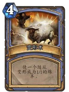 这张卡牌跟变形术可以对调,不过我会跟大家解释我更喜欢火球术而不是变形术的原因。火球术耗4点蓝可以造成6点伤害,它足够消灭游戏中85%的仆从了,不仅如此,它还能直接对敌方英雄造成6点伤害。变形术不能对古尔丹造成伤害,但是火球术可以。此外,变形术/火球术的组合要消耗6点蓝。用火球术基本可以对付所有活着的仆从,剩下的两点蓝可留着做点其他的事。你也许会说,变羊后只有1/1,这样还有什么好担心的呢?因为它仍然有一点伤害来解决掉你某个血少的仆从,甚至是你,而且中立卡牌或职业专属卡牌还可能为它加buff。