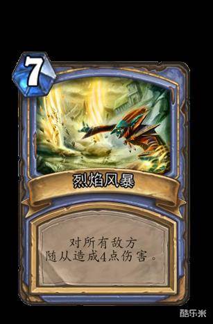 炉石的竞技场是不完美套牌的战场。我们试图从中抽出足够数量的卡牌和必杀技能,不过最终我们也只能受到CCG之神的摆布。烈焰风暴是一张非常强大的卡牌,因为它几乎可以清理到战场上的所有敌人,不过这里还有几个问题。虽然有时候总会有一些幸免于难的仆从活下来,但这个技能真的可以扭转战局。你要尽量留着这张牌,如果可能,等到对手在场上有超过三个仆从的时候再用。如果选牌的时候出现的第二张烈焰风暴,我推荐你拿着,因为它实在是太强大了。即使你的对手成功补充了场上的卡牌,你也很可能因此扳回场上的局面。