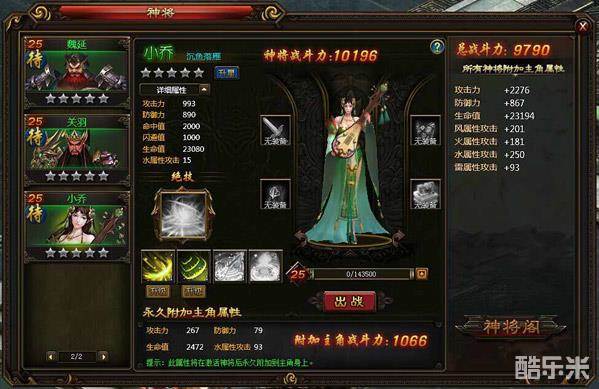 玩家们都知道,神将可以穿戴武器、衣服、头盔和首饰四个部位的装备,每件装备可以为神将和人物提升属性。而当神将的四件装备凑齐以后(同等级),玩家们就可以对神将进行进阶。 神将获取装备的形式非常简单,通过2-4样材料合成就可以,例如无双将魂、神将精华、黄金矿石等,当玩家们集齐一定数量的材料时就可以合成神将的装备啦!