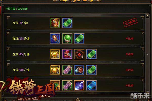 玩家们的在线时间每到达3、15、45、90、150分钟,即可领取一份丰厚的道具奖励,奖励包括:
