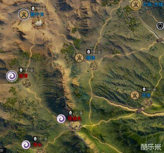 玩家的出发起始点一般就在北镇先锋营(南疆也是如此)玩家的移动和骑马与砍杀类似只要点击鼠标就可以到指定位置一般来说刚开始势力战的第一天陇城关和静宁关是最激烈的战区