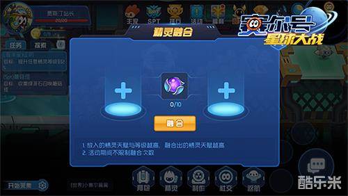 进入空间连接站后,场景中间会有一个融合精灵的装置。点击装置,弹出如下界面。界面两边分别需要放上精灵卡斯达克和鲁加斯。中间需要放置10个大地之力。在阿尔法星烧掉蜘蛛窝,必定掉落大地之力。一切准备好后,只需要点击融合按钮即可获得卡鲁克斯。不过,需要注意的是,放入融合的精灵等级和天赋越大,融合出的卡鲁克斯天赋就会越高。