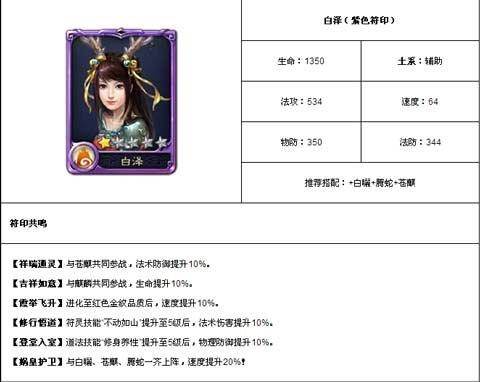 西游神魔决紫色符印白泽在比赛中好不好用,这个符印是土系属性的符印,主要的作用就是给队伍提供输出的空间和攻击的速度的,不要看这个基本上没有什么输出伤害,但是他主要是给队友提供更好的输出伤害的,比赛胜利的标准并不是你打出多少伤害,主要的是看你的团队贡献值。