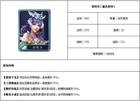 西游神魔决蓝色苍穹月符印技能属性提升攻略,这个符印不管是技能还是羁绊都是保命和防御的技能,虽然没有伤害但是给队友提供续航能力之一定程度上弥补了他的输出方面的不足,玩家使用此符印的时候切记不要点攻击仅能,只要有机会就给你们的回复添砖加瓦,祝你们游戏愉快。