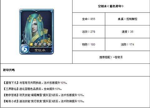 西游神魔决空似水符印基本属性使用攻略,这个符印的作用就是控制住别人,尽量让自己的队友减少控制,这样他的任务就完成了,今天这个复印小编觉得前期用用还是可行的,后期不建议是使用,但是当时用这个符印的时候记住先要将他的速度提升上来,这样就能优先出手控制敌人,秒杀一人我们的优势就会很明显了,团战我们就不用怕对面了。