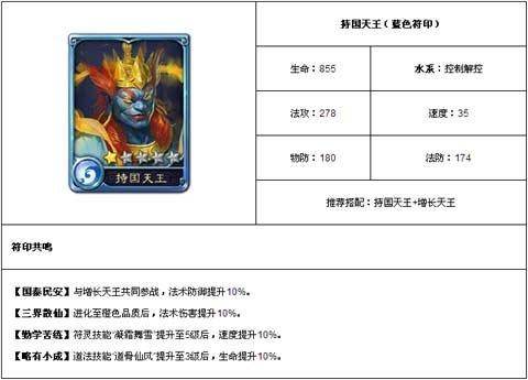 西游神魔决蓝色符印持国天王很强很任性,想要强到没朋友是很困难的,但是这个符印在他的等级制中就能做到,符印的羁绊都是那些等级较强的符印,他们为什么能够在一起搭配呢,只能这样说吧,人以类聚物以群分,这个复印虽然等级低,但是技能强没人敢看不起,所有他就是屌丝心中的英雄,站起来吧让那些以前看不起你站起来的人说一句,我等你们站起来。