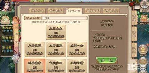 提升方法:当你帮派的帮派科技达到一定的值,则可消耗科技值来提升科技。