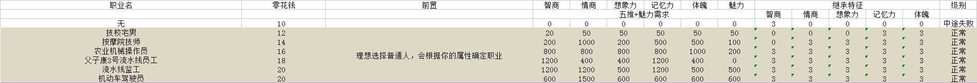 普通人主要有:技校宅男、按摩院技师、农业机械操作员、父子康3号流水线员工、流水线监工、机动车驾驶员。