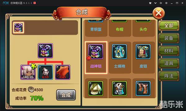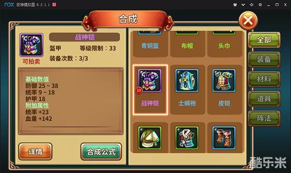 打开之后,琳良满目的装备瞬间映入了我们的眼帘,不过大家不要慌,我们可以通过右侧的分类来大体的查找我们要合成的物品。在合成系统中,我们可以合成装备、材料、道具甚至阵法。点击想要合成的物品即可查看物品的属性或功能,在合成物品的下方可以查看物品的合成操作和详细说明。
