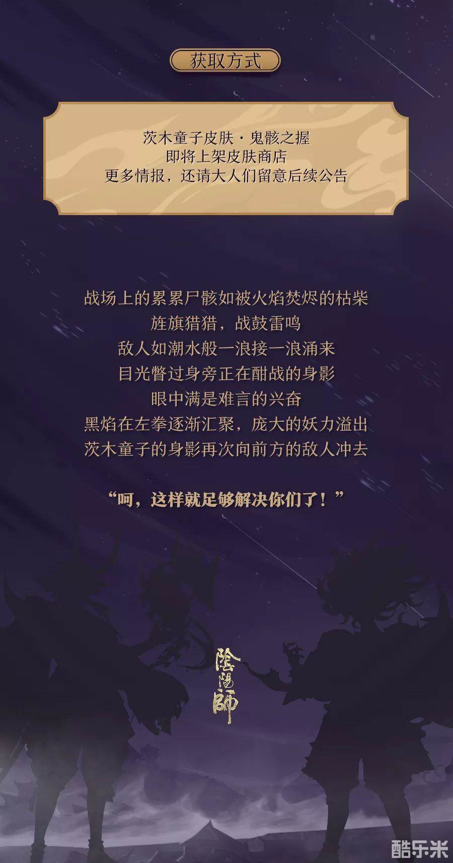 《阴阳师》茨木童子新皮肤鬼骸之握即将上架商城。随着《阴阳师》手游例行更新的临近,即将迎来茨木童子新皮肤鬼骸之握上架商城,今日新皮肤首曝,随小编一起来看看吧!